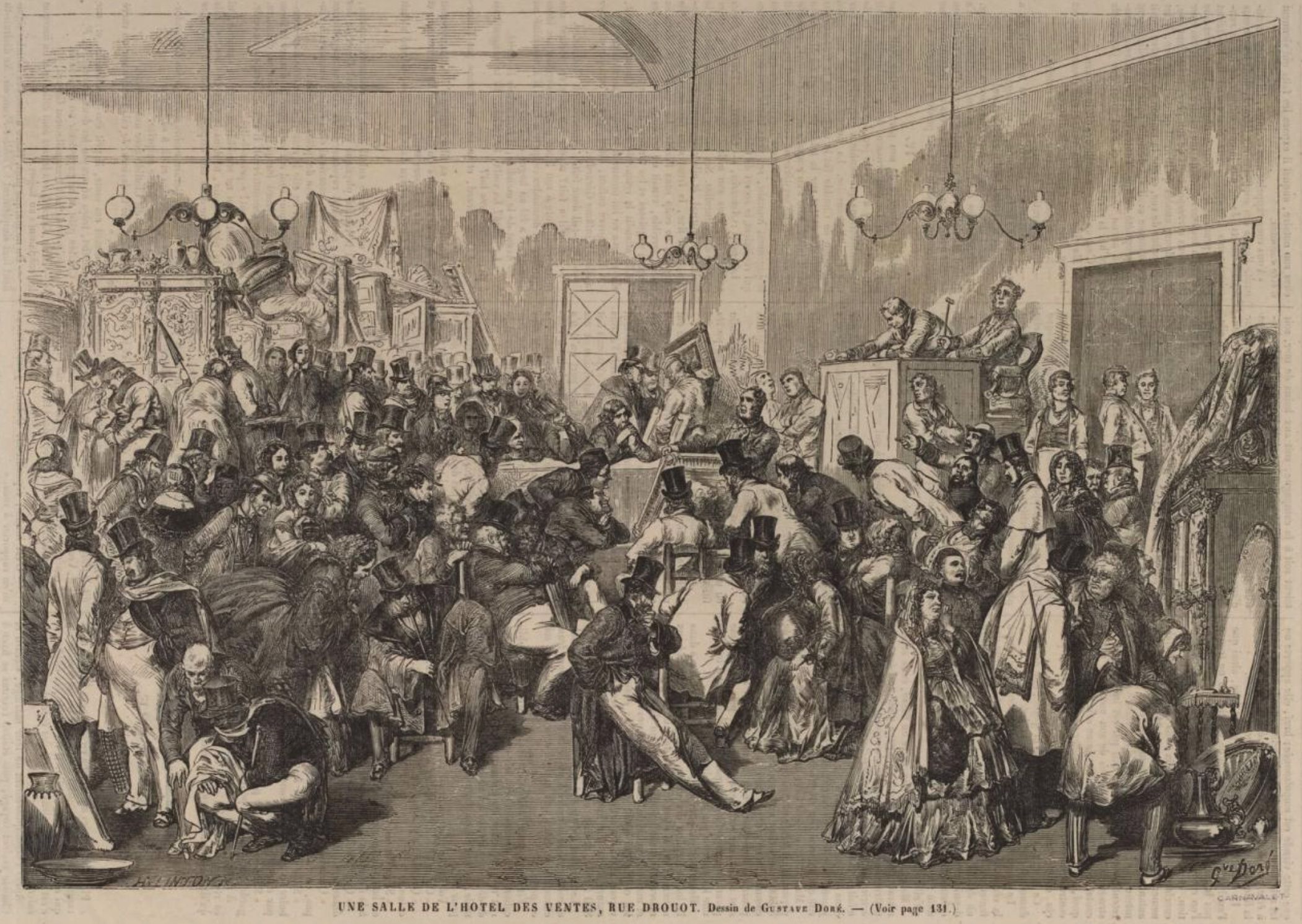 Gustave Doré, Une salle de l’Hôtel des ventes rue Drouot, dans Le Journal illustré, 1866