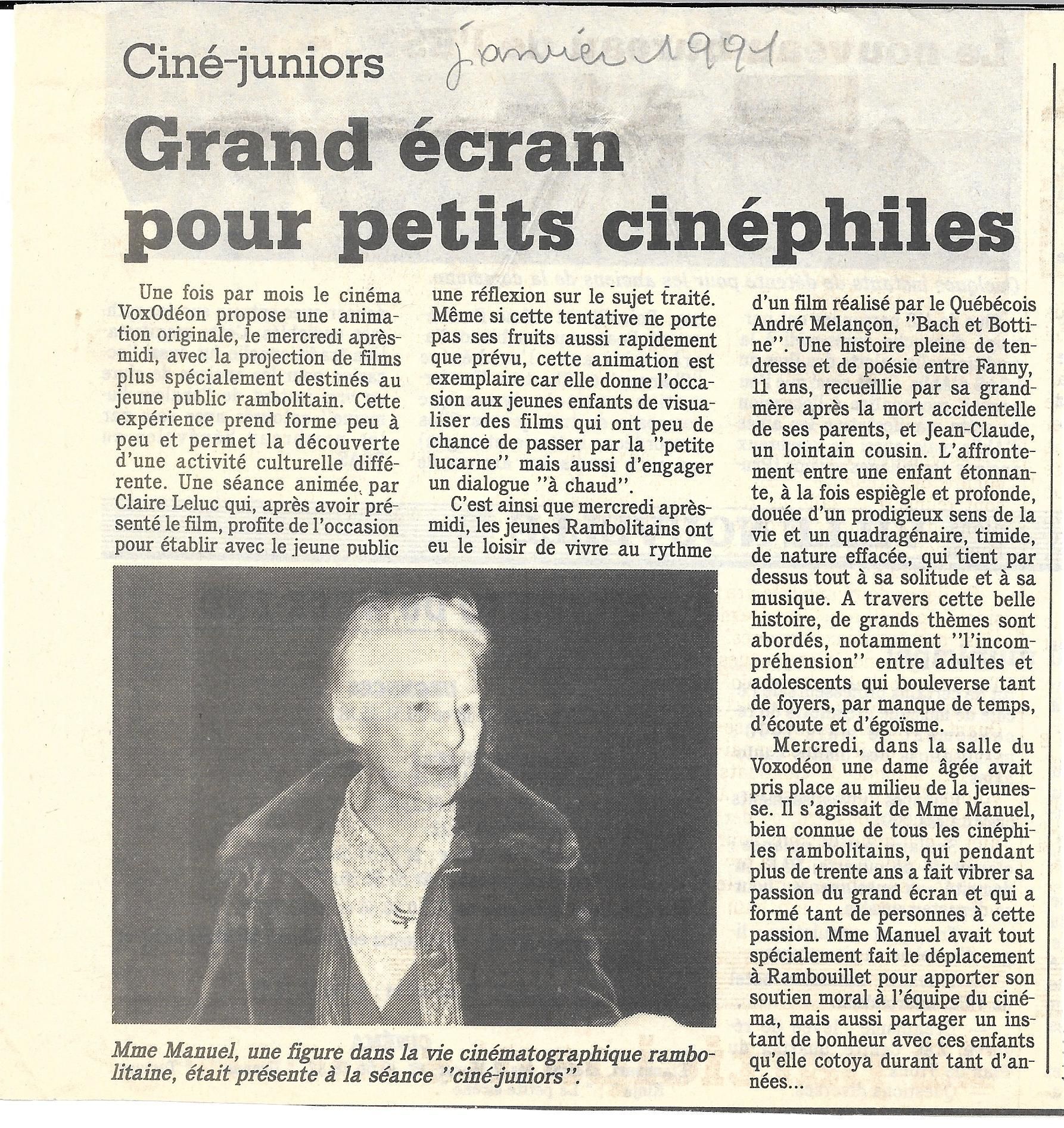 Et pour évoquer madame Manuel et des débuts du ciné-club, je cède la parole à Mme Guillaumin, un professeur de Rambouillet qui a bien connu cette époque :