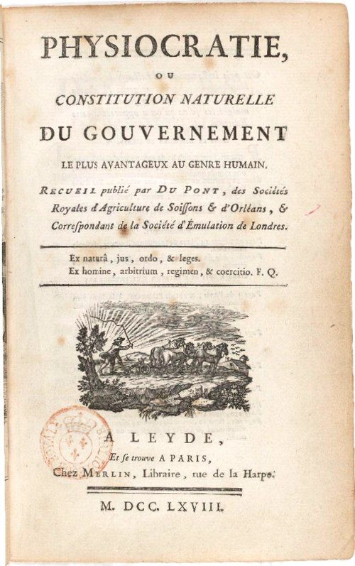 François Quesnay et le marquis de Mirabeau (le père du révolutionnaire Mirabeau) se rencontrent à Versailles en juillet 1757 et fondent ensemble cette école de pensée.