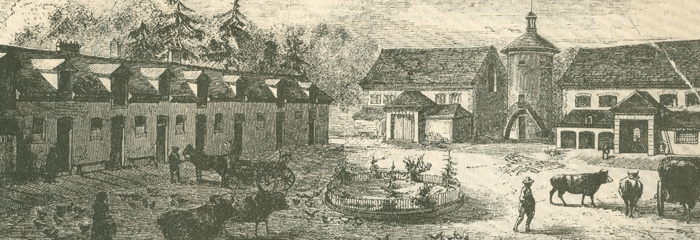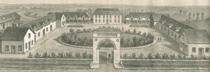 366 d’entre eux arrivent à Rambouillet le 12 octobre 1786 et sont provisoirement parqués dans la ferme de Mocquesouris, en limite du jardin anglais.