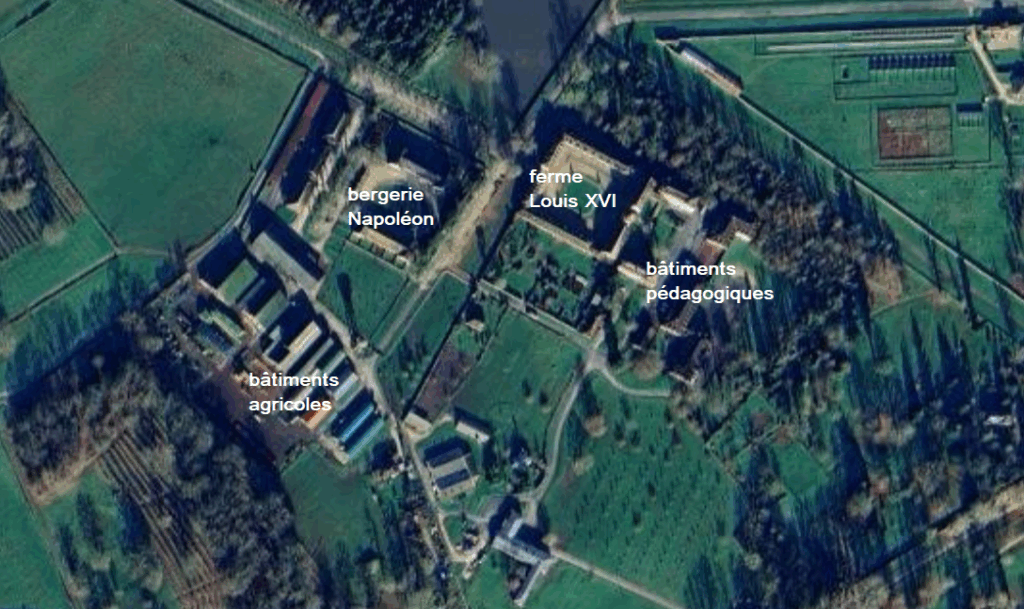 C’est cet ensemble en deux parties : les bâtiments Louis XVI et leur complément Napoléon 1er, qui constitue la Bergerie Nationale.