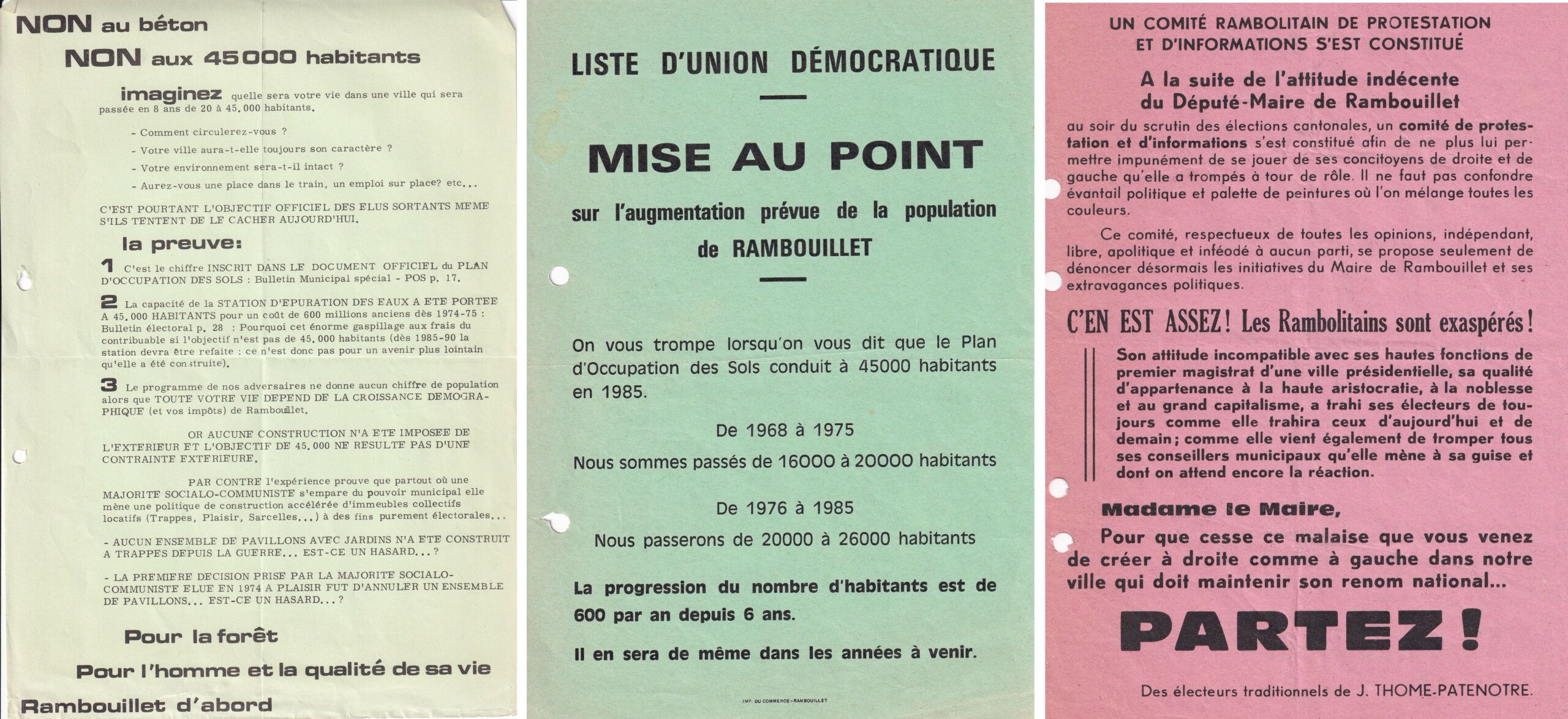 Les projets locaux ont toujours compté plus que l’appartenance d’un candidat à un parti politique national : c’est ainsi que Rambouillet, par attachement à Mme Thome-Patenôtre, radicale de gauche et signataire du Programme Commun, s’est trouvée « ville de gauche » jusqu’en 1983, ce qui ne correspondait pas du tout aux aspirations de la majorité de ses habitants.