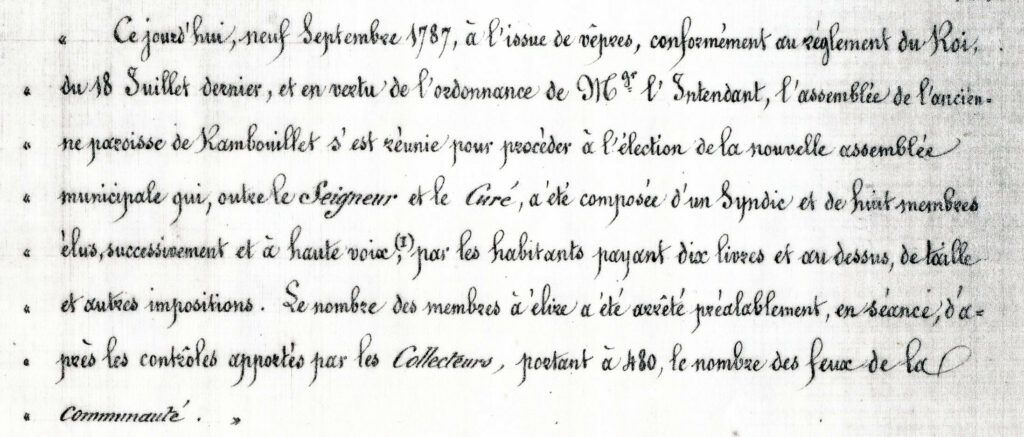 Louis XV, puis Louis XVI avaient entrepris trop timidement et trop tardivement une réforme. Aux élections du 9 septembre 1787 une assemblée municipale avait été élue par les habitants les plus riches de la commune. Elle se composait (outre le seigneur et le curé de la commune) de huit membres présidés par un syndic.