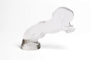 Lalique se consacre alors à la création de nombreux objets fabriqués en série tels que vases, coupes, chandeliers, flacons à parfum… On lui doit le bouchon de radiateur de la 5 CV Citroën (1925), la décoration des voitures-restaurants du Côte d’Azur Pullman Express (1929), le superbe retable de l’église Saint Mathieu à Jersey, la décoration de la salle à manger des premières classes du paquebot Normandie (1936) et tant d’autres chefs-d’œuvre.