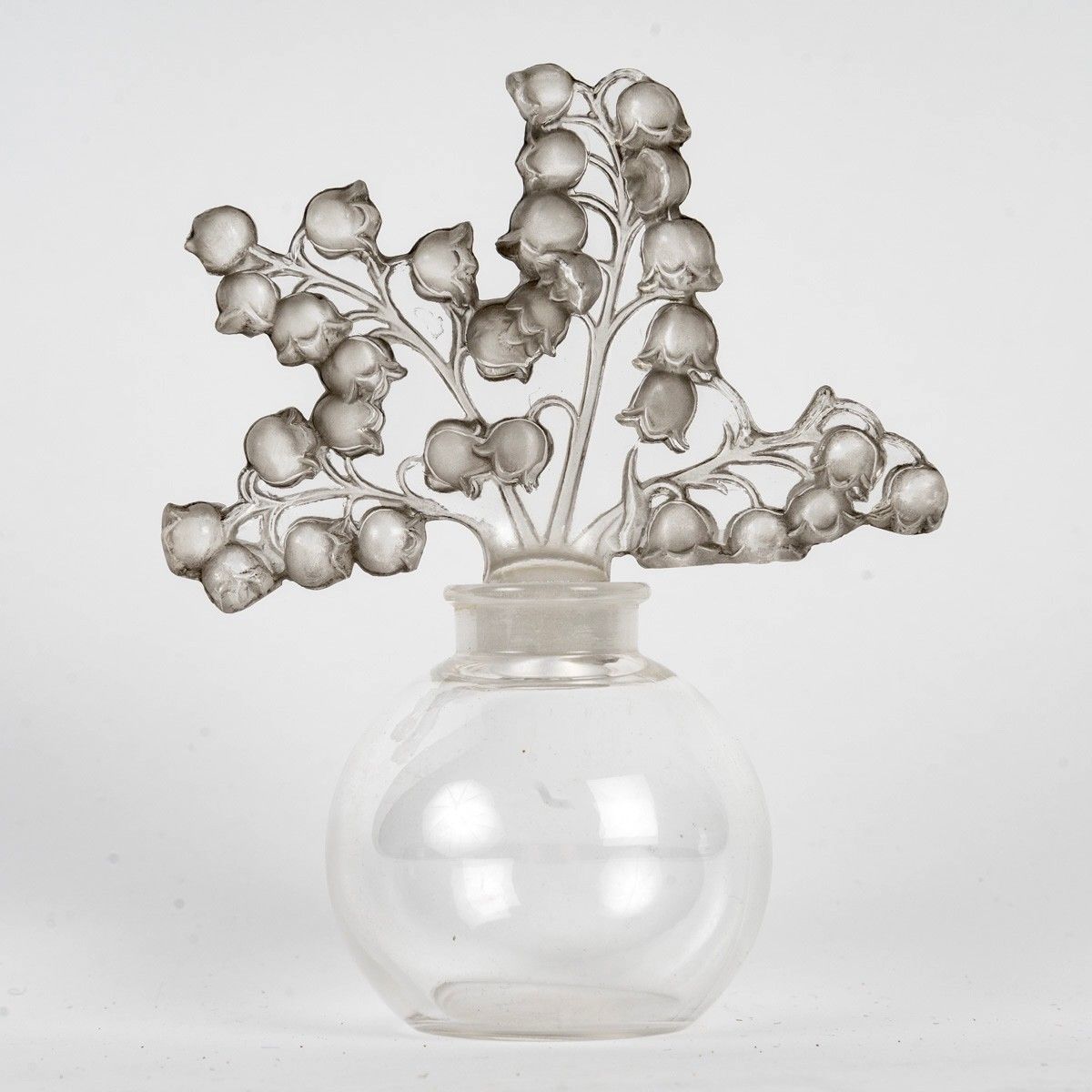 Clairefontaine ? Muguet ? On ne le sait pas toujours, mais Lalique a vécu à Clairefontaine durant 15 ans. Sans doute s’en est-il souvenu quand il a conçu ce flacon, et lui a donné ce nom (mais Lalique n’a jamais donné d’explications sur les noms qu’il a choisis pour ses modèles).