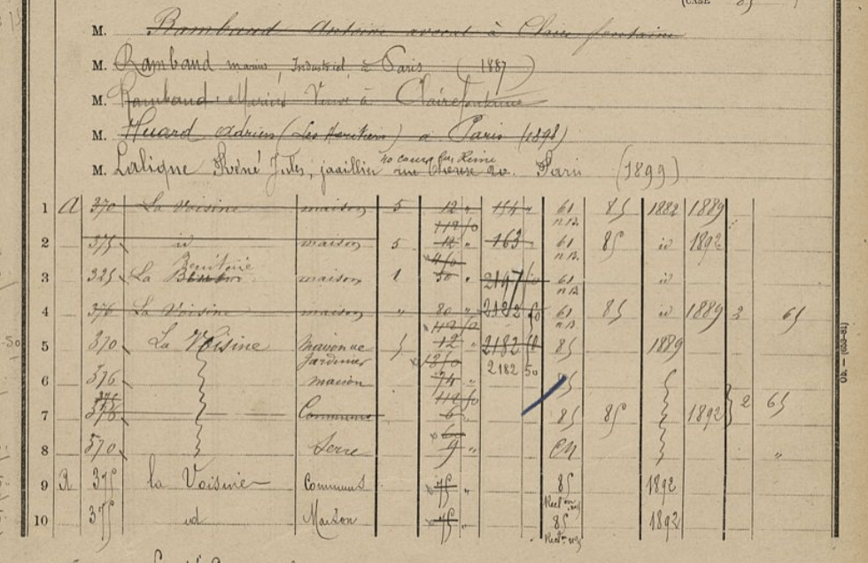 D’après la fiche de cadastre, la propriété achetait par Lalique comprenait plusieurs bâtiments, dont le prieuré de Saint-Germain des Agiots, autrefois exploité par l’abbaye de Clairefontaine, et remplacé par des serres.